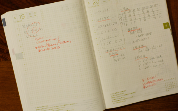 小林くんの手帳には学習の要点がまとめられている。赤字でスタッフからのコメントが。