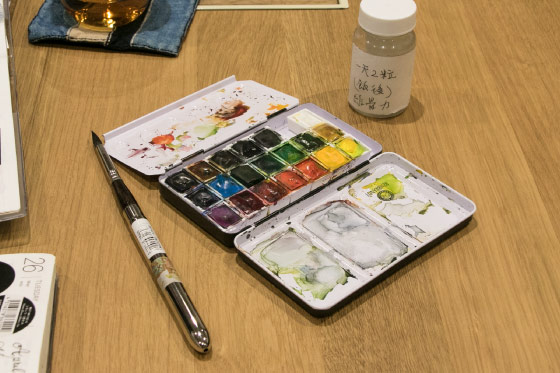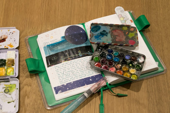 ここに好きな色の絵の具を絞って入れておき、持ち歩いているそう。