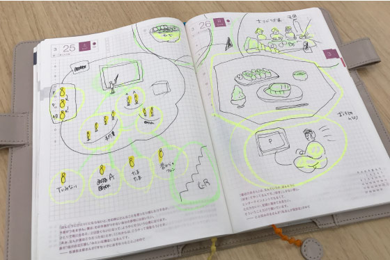 絵や図などのグラフィックに「可視化」して記録するという