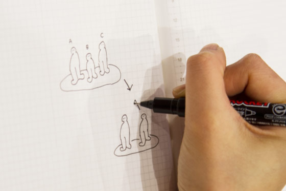 長い意見のなかから話の芯をバッとつかんで絵にする、