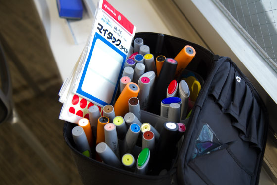 清水さんが持ち歩いているカラーペン。実際に使う「色数」は少ないものの、