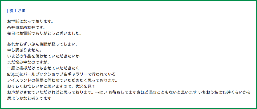 メールをお送りすると、早々にご本人から