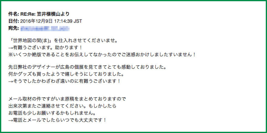 ▲だいたいこんな感じの返信なので、毎回、自分の書いたメールが戻ってきたのかとビビりました。