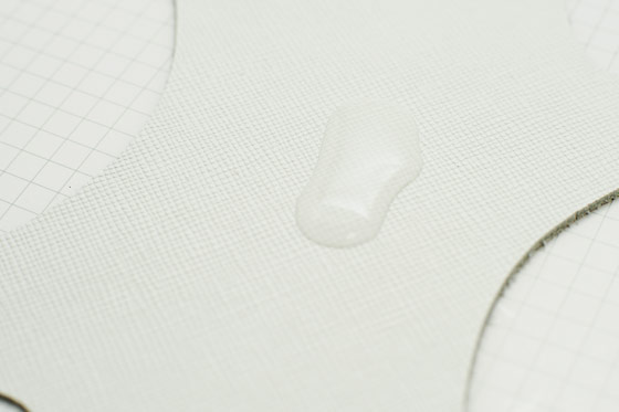 完全防水であるほか、防油・防汚効果がある革。
