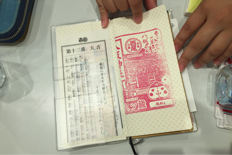 手帳の見返しにはさんだおみくじは、