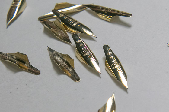 ▲金で作ったペン先。金ペンと呼ばれる