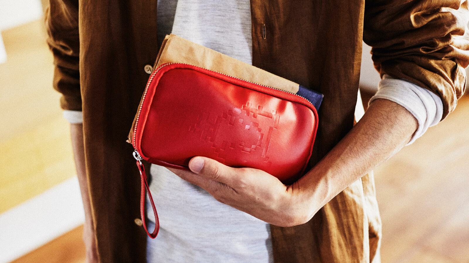 カバンの中でもすっきり収まるフォルム - ポーチ外側にもひとつ、深めのポケット