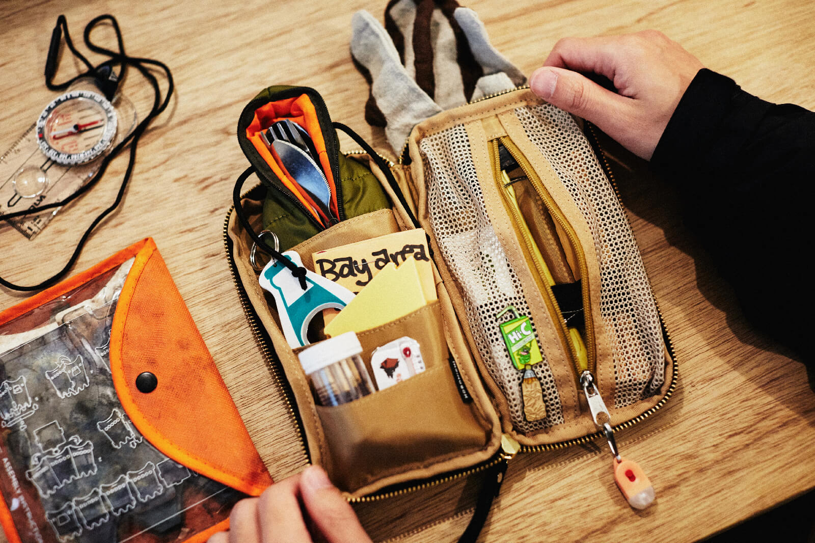 温度計や栓抜き、カトラリーなどアウトドアで役立つアイテムもたっぷり収納。