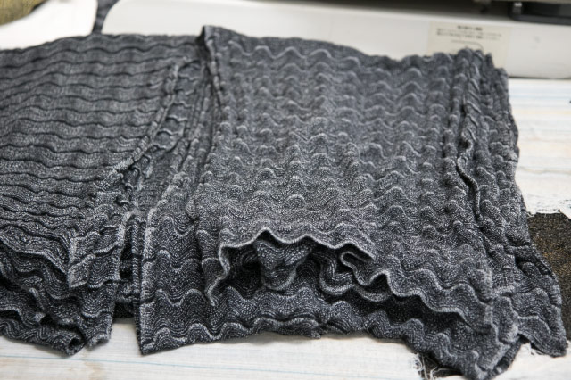 ▲整理工場で複雑な加工をほどこしたニット生地。