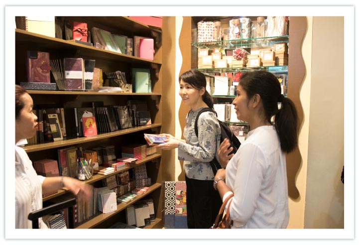 文具も扱う、大きな書店も見学し‥‥