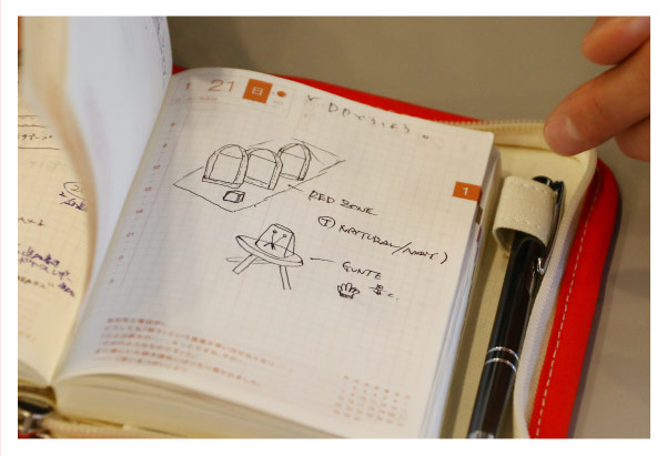 仕事に関する記録を残しておくと、あとから振り返って書き足せるのが便利だとか。TO DOリストには「ディスプレイどうしよう」と書いてある。