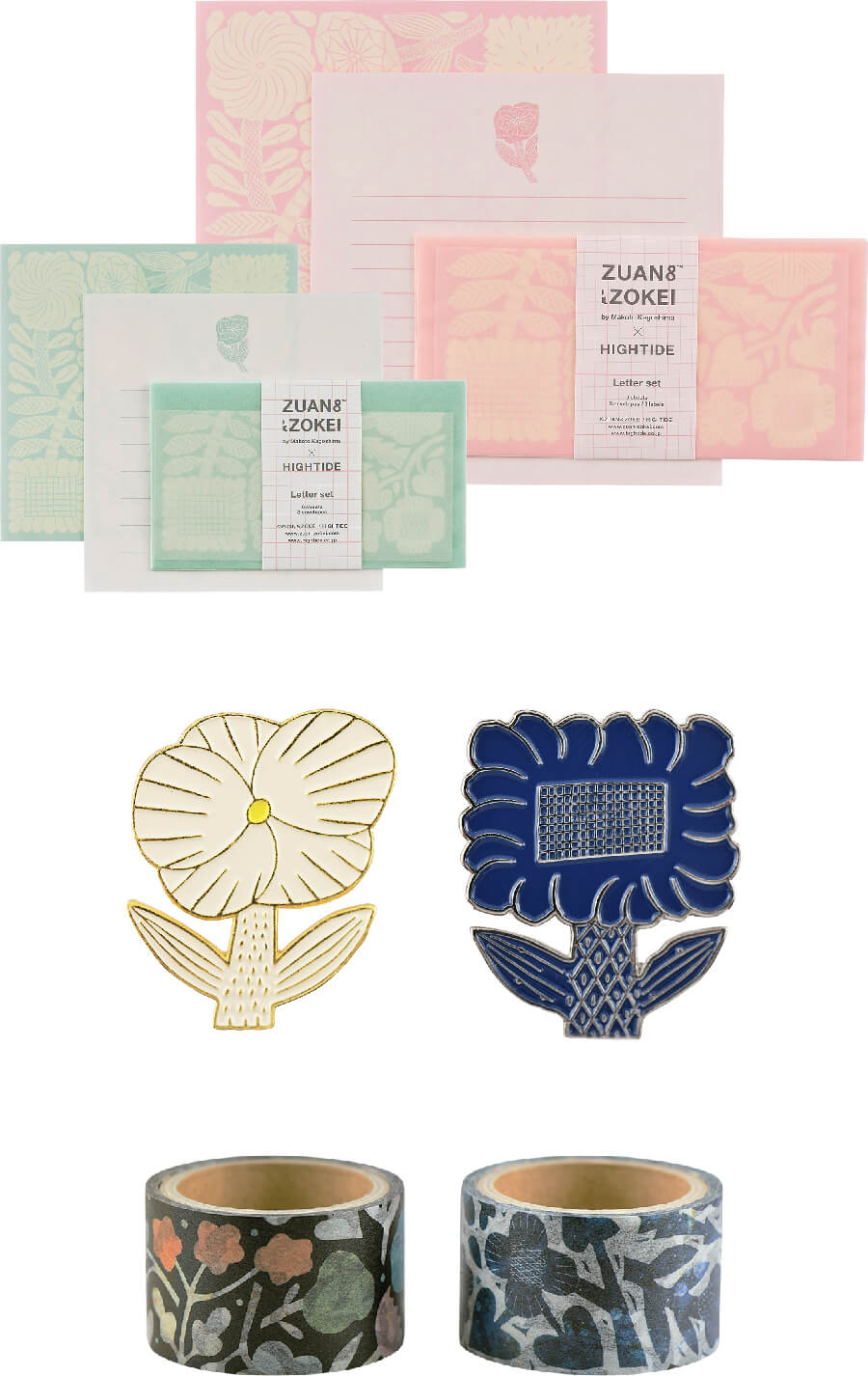マスキングテープ、ピンバッジ、レターセットを