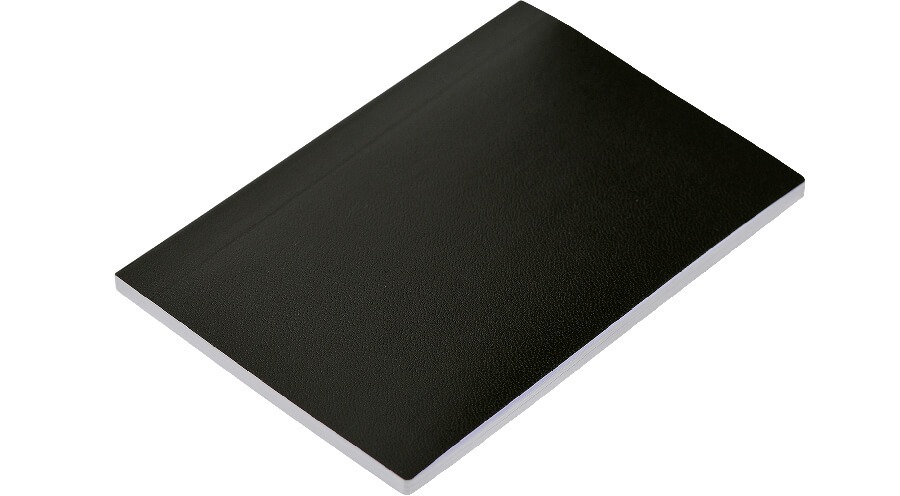 黒い表紙の、シンプルな無地のノートです。