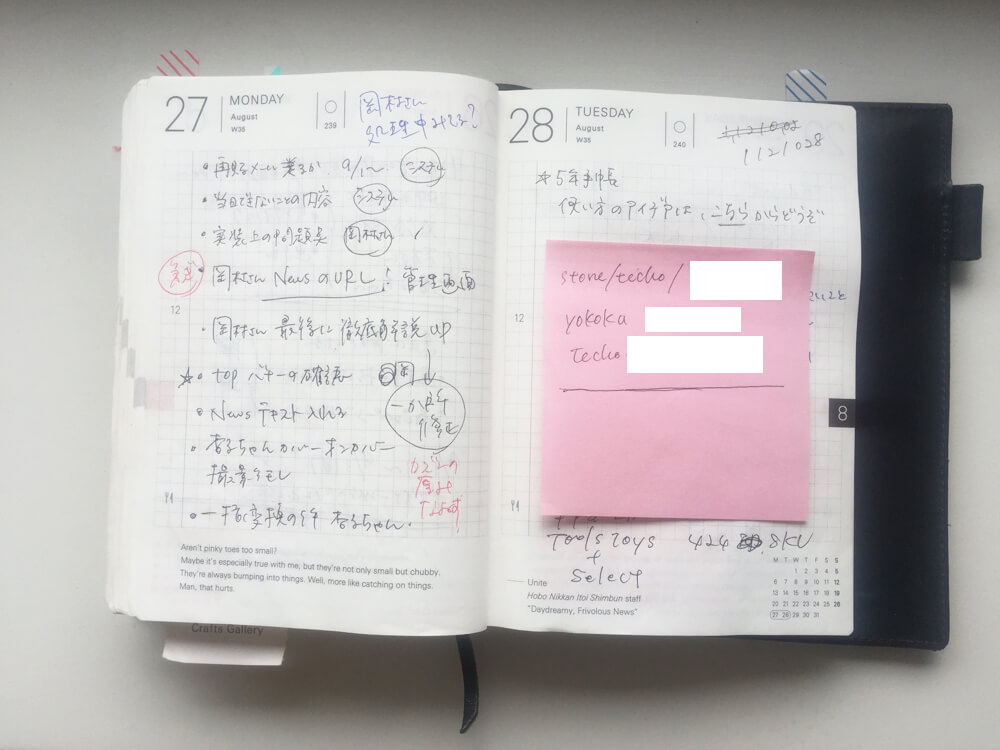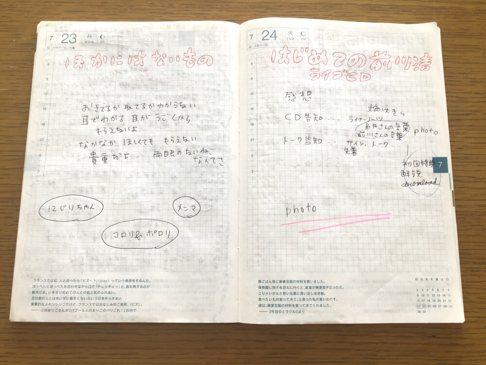 たまにおさまりきらなくて、次の日のページに書くことも。