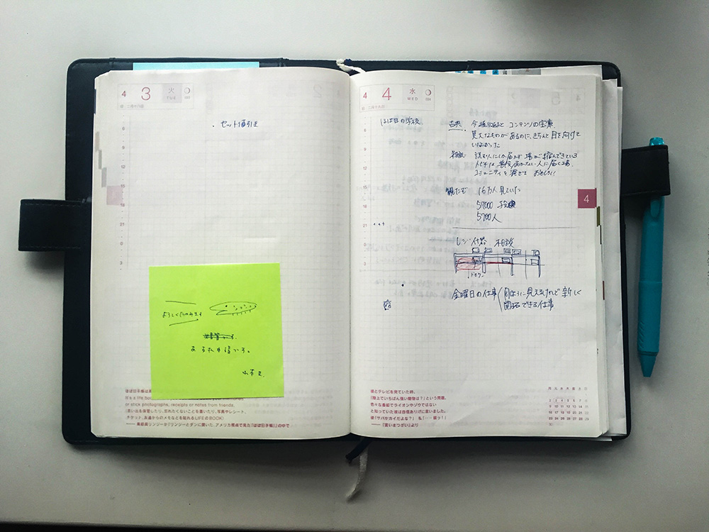 ほぼ日の全体ミーティングのメモをとるぐらい。