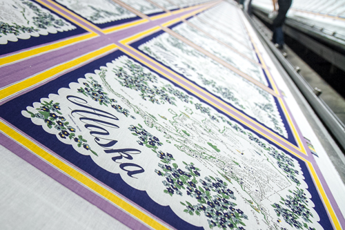 七版、すべて刷り終えて、完成。色数にもよりますが、一日に刷ることができる生地はおよそ10反ほど。ハンカチにして1000~1500枚分くらいです。