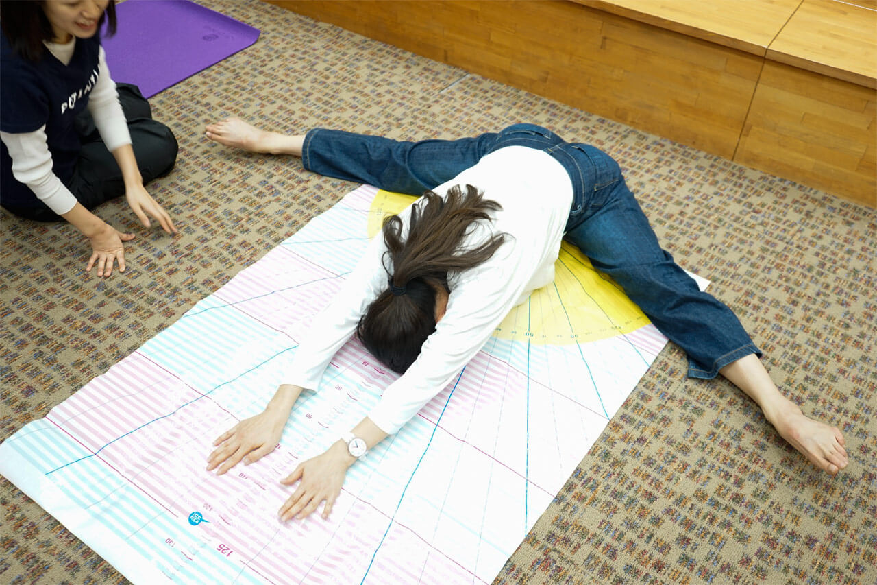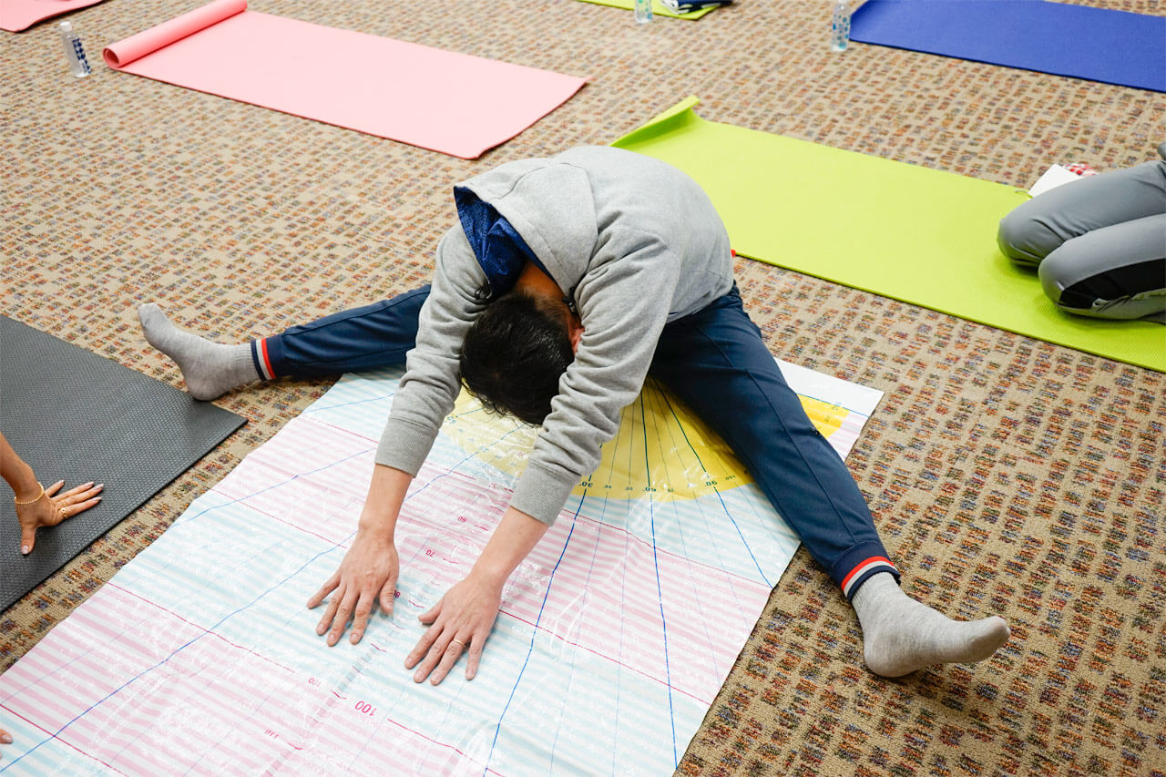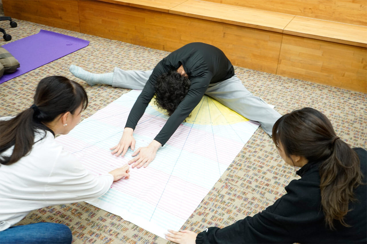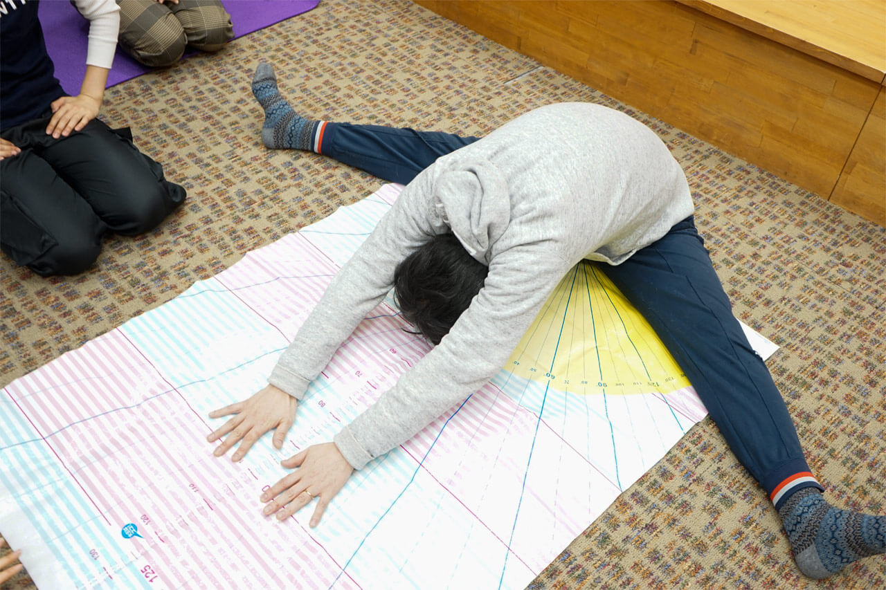 ほぼ日手帳で開脚部、みんなでストレッチを
