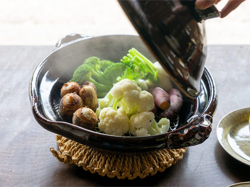 うちの土鍋「ベア1号」&「佐渡のわら鍋しき」セット 3名 - C