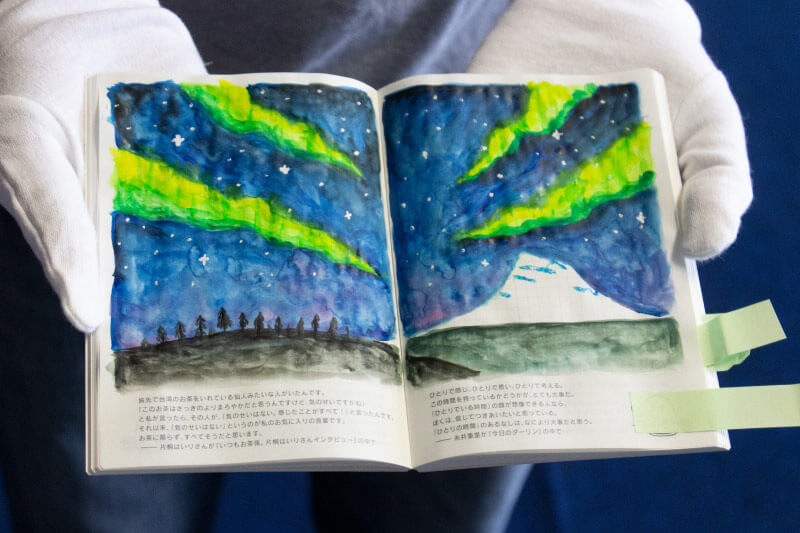 day-freeのムービーで最後に出てくるオーロラの絵。合田さんが水彩絵の具で描いたものです。