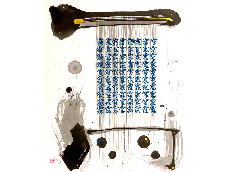 真ん中に雨冠の字をいっぱい書いた作品ですが、