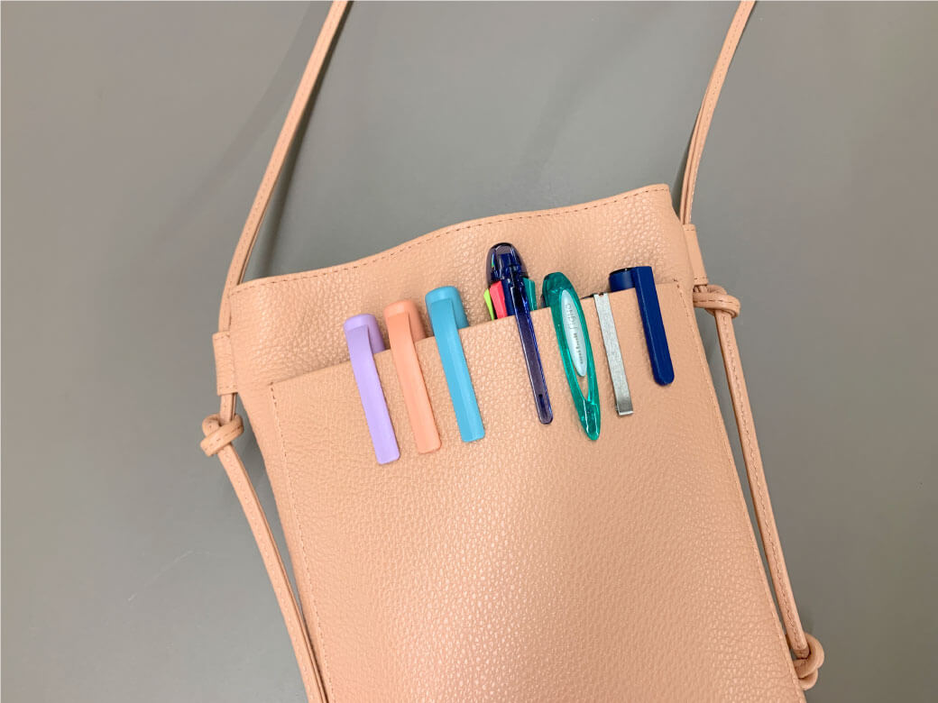 裏面のポケットに、定番で使う3本のペンを入れてます。