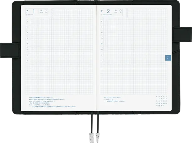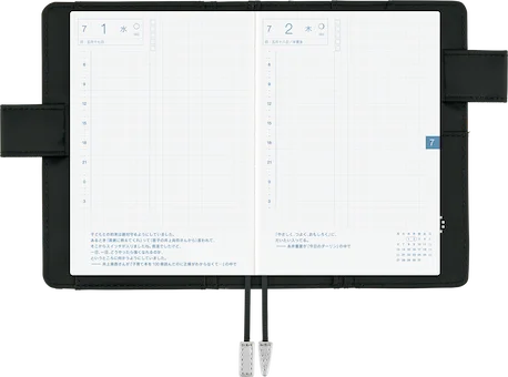 仕事も日常もすべて詰め込む用に、A6サイズのオリジナルを愛用しています。今年はパステルなカラーズ「シーシェル」とカバー・オン・カバーで、ほどよくたまごっちたちを目立たせたい!