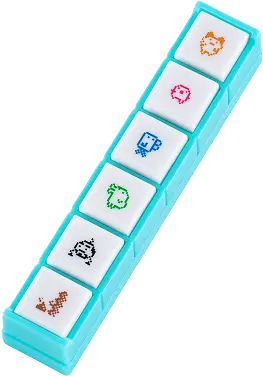 ドット絵のたまごっちが並んでいて、レトロゲームっぽい雰囲気でかわいい! 裏面の成長マップも、たまごっちならではの図柄で好きです。