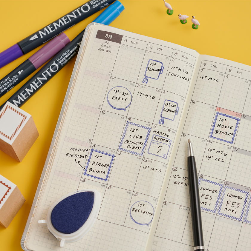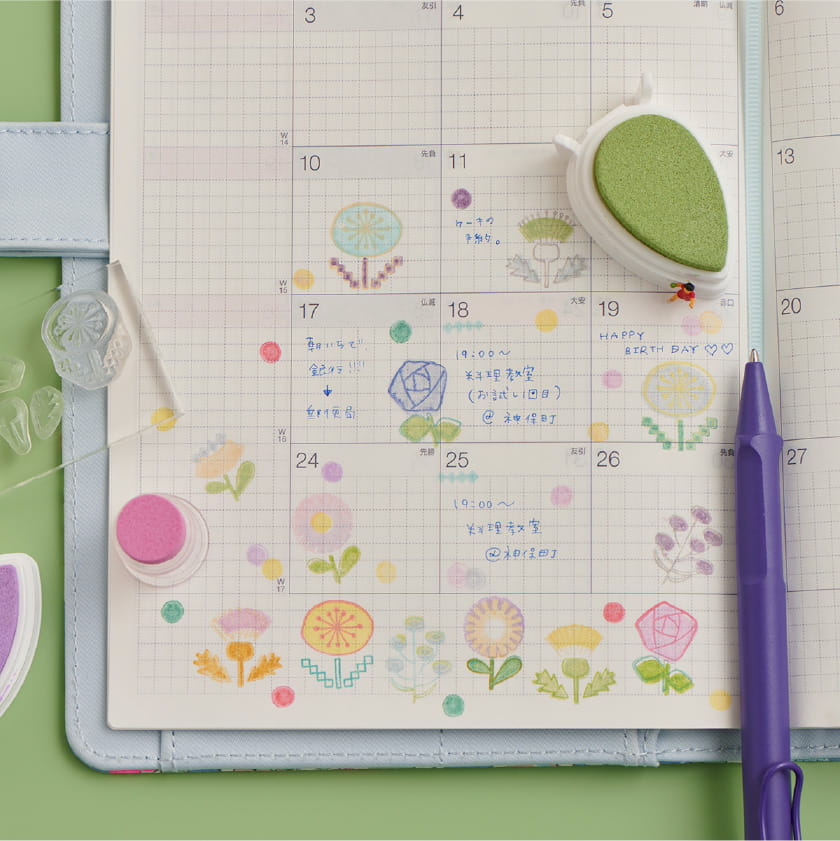 月間カレンダーのマスにぴったりサイズのスタンプ。