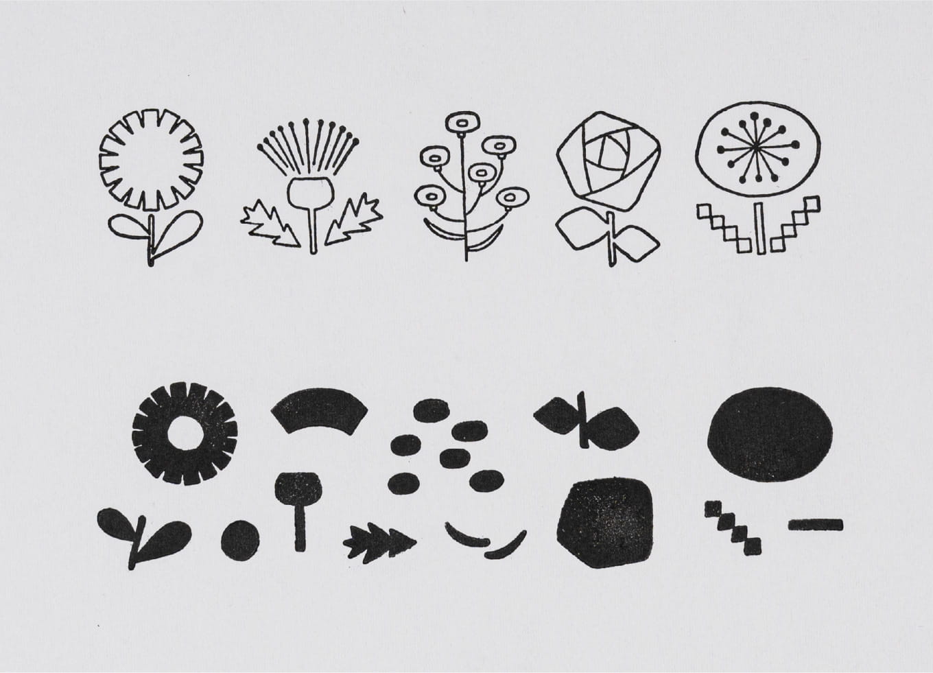 線画パーツで押した花に、塗りのパーツで色をつけて