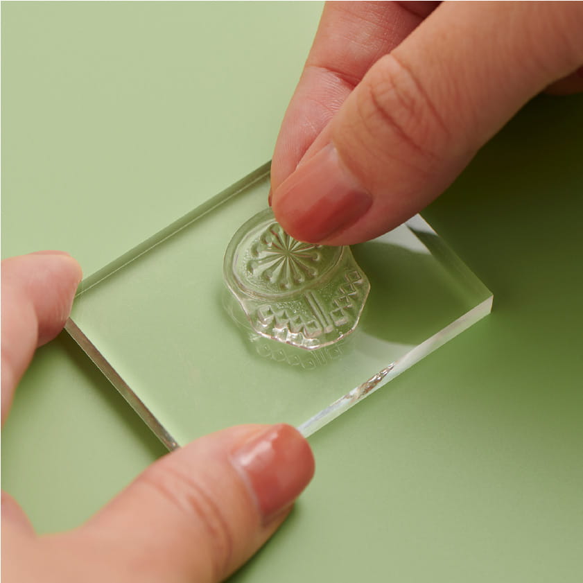 透明のアクリル台に自分で貼り付けて使うスタンプ。