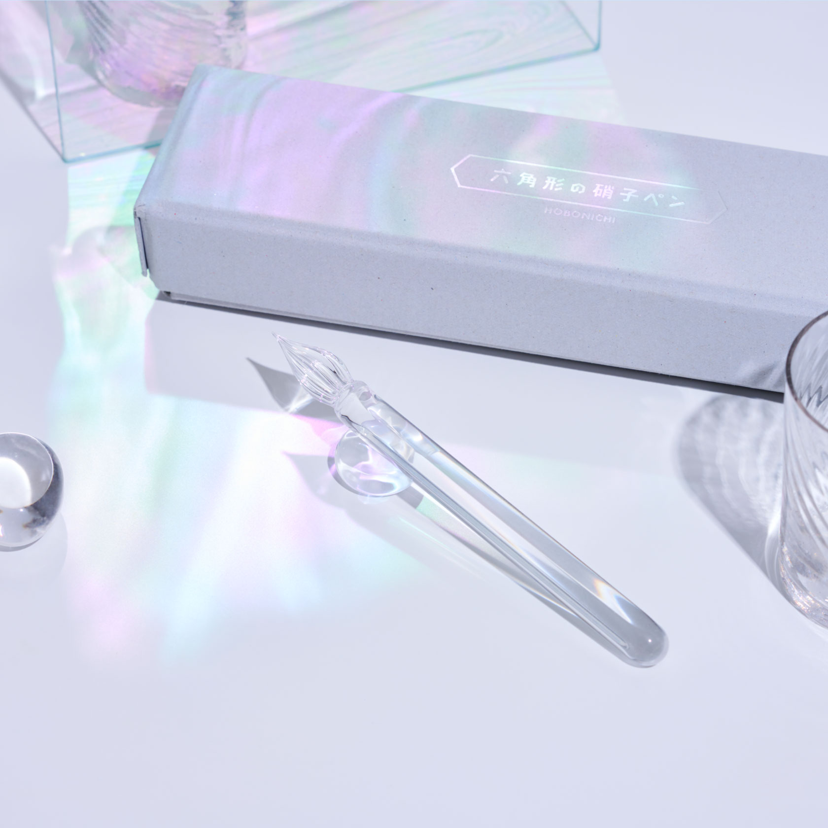 「六角形の硝子ペン」は割れにくい硬質ガラス性。