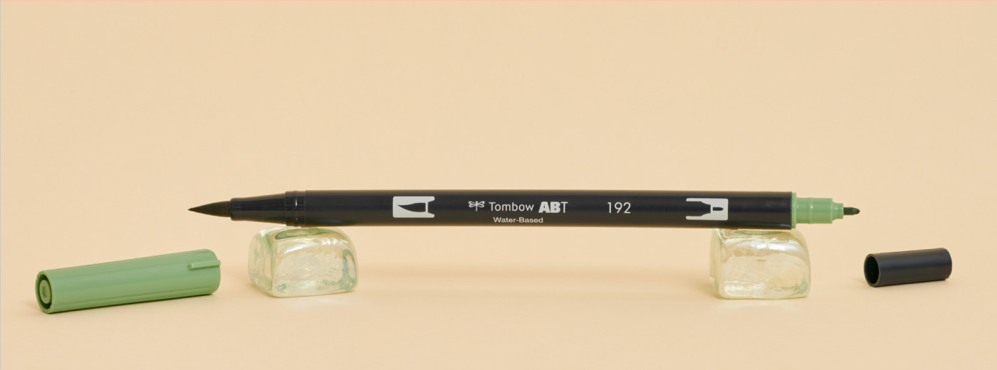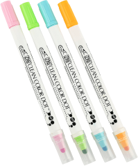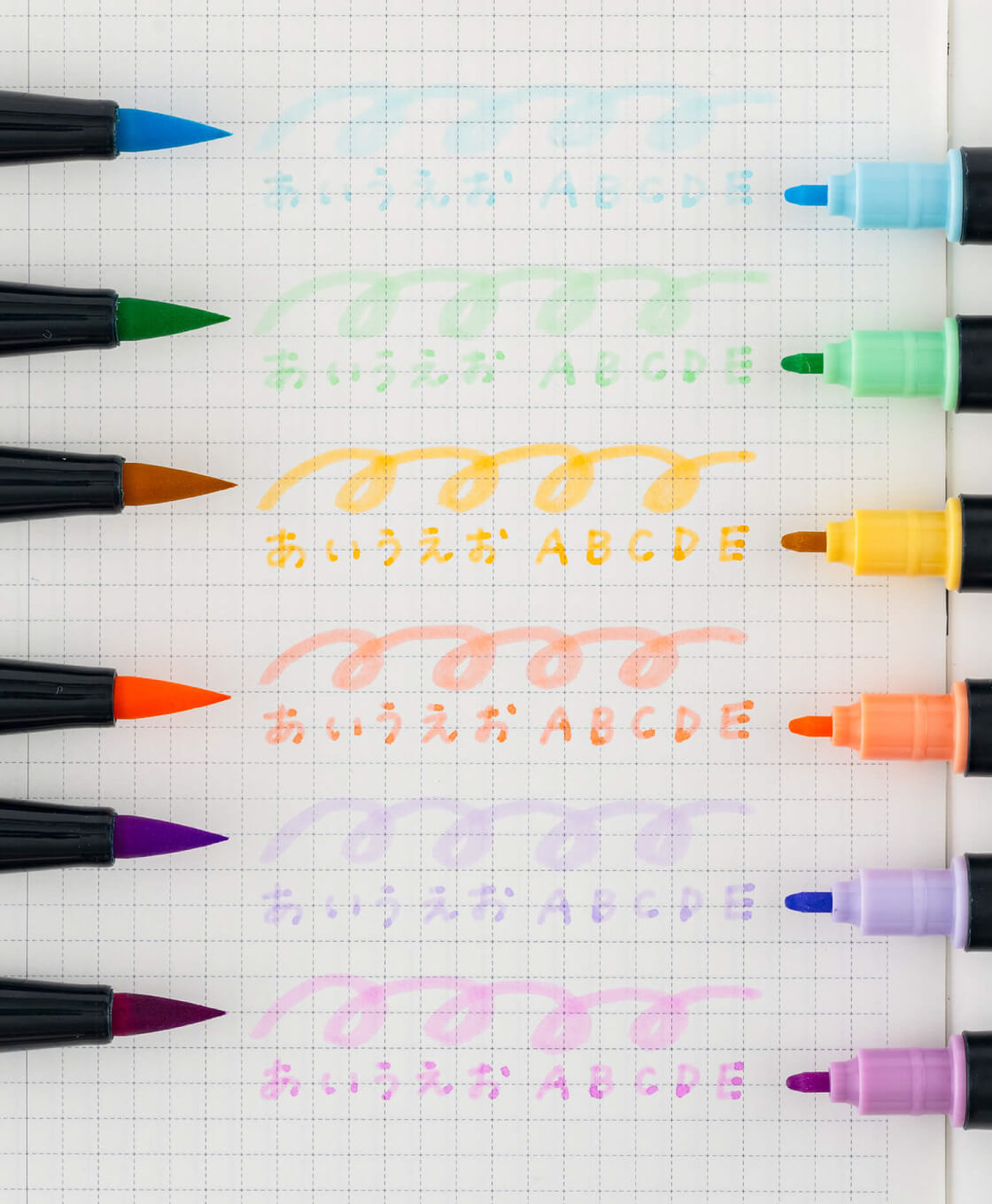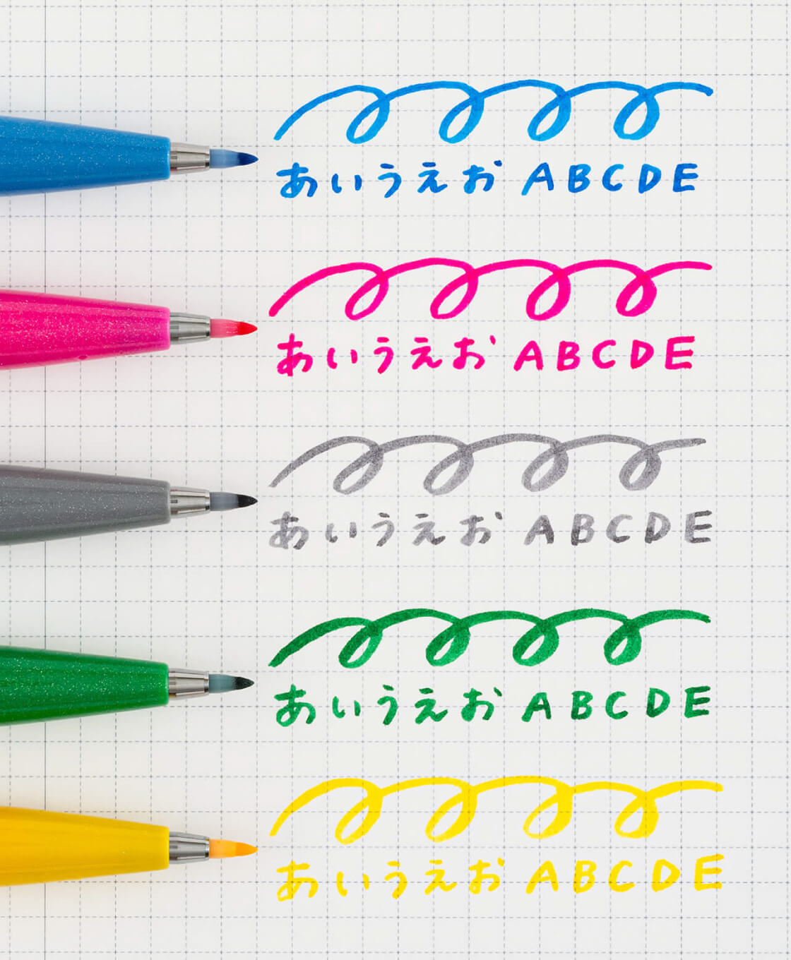 (上から)四季織マーカー、水性マーカーABT、筆タッチサインペン、ZIGクリーンカラードット
