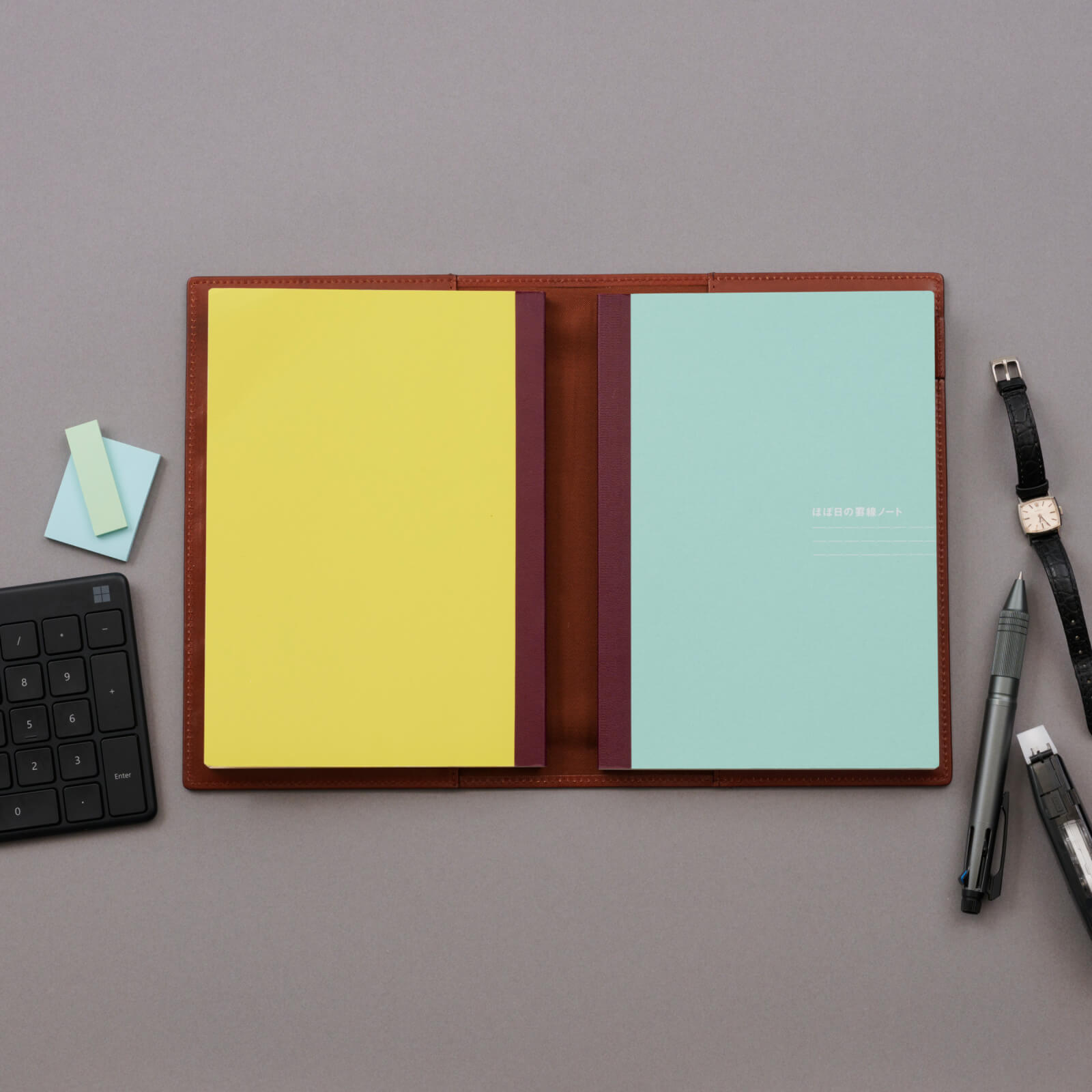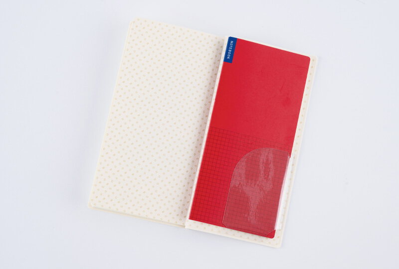 右にほぼ日の罫線ノートを入れて持ち歩けます。