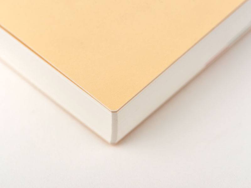 The page corners are rounded to minimize creasing and damage to the edges when carried in a bag, for example.