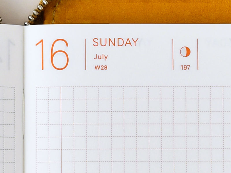 While all the other daily pages are printed in charcoal gray, Sundays are printed in bright red for quick reference and an attractive contrast.