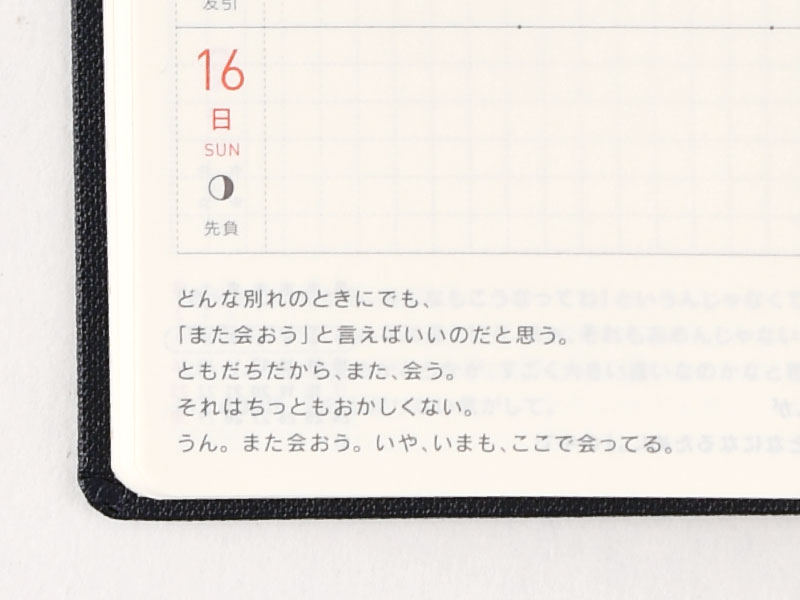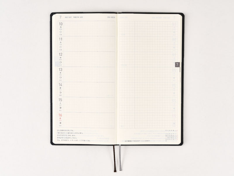 From the heartfelt to the humorous to the whimsical, each weekly spread features a quote specially selected from the planner’s parent site, Hobo Nikkan Itoi Shimbun. The quotes for the Weeks version are only in Japanese. If you would like the quotes in English, please buy the day-per-page A6-size Hobonichi Techo Planner.