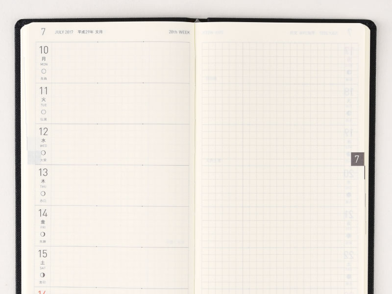 The right page on each weekly spread contains blank graph paper to give full reign to users when drawing out plans or writing out schedules. You can also draw lines across the page to correspond with each of the seven days on the left to give yourself more writing room. At 3.55 mm, the graph paper is slightly smaller than that of the daily planners.