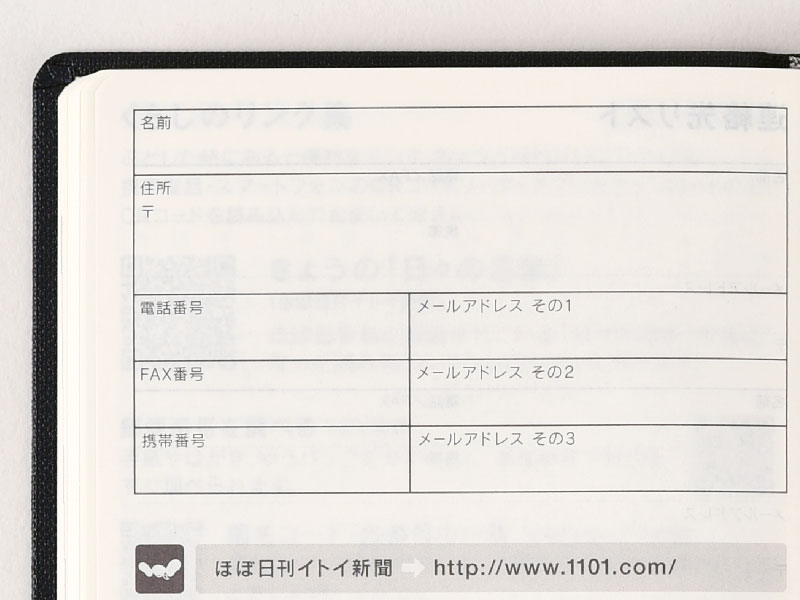 The address book allows you to write in the contact information for up to 6 people – especially useful if you ever forget your cell phone.