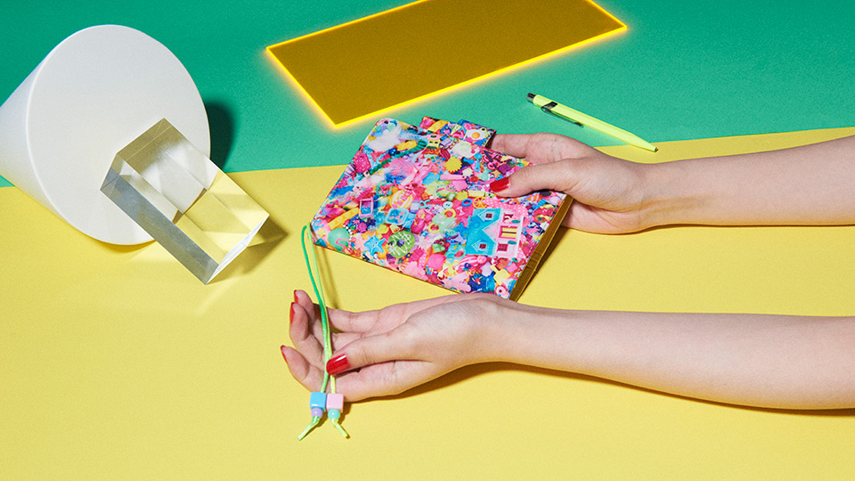 Thank You All is a cover with an all-over print, featuring the photograph of a piece Masuda created based on the Hobonichi Techo slogan, "This is my LIFE." The thrilling piece is jam-packed with cute items such as a little house, donuts, fried eggs, scissors, bicycles, stuffed toys, balls, hearts, dinosaurs, baby dolls… The list goes on! It’s fascinating to look through all the things in this piece.