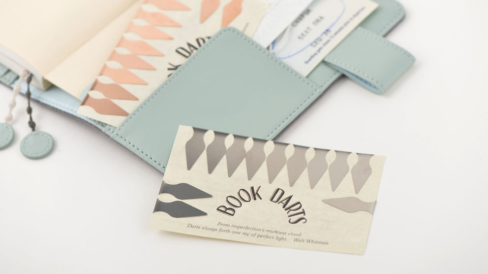 These metal clips can clip notes, tickets, and other papers to a planner page like a paper clip. They can also save your place in your book and make it easy to turn right to an often-used page. The clips are very thin, so you can fill the pages of a book with them without worrying about bulk. The clips come in bronze or stainless steel, and a 50-count tin can or 12-count card.