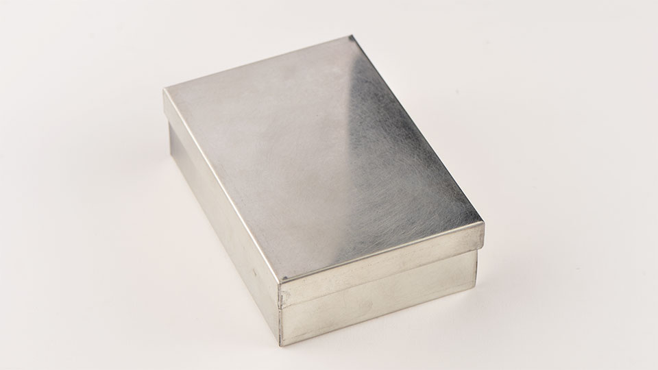 Size 110 mm x 165 mm x 50 mm Weight 140 g Main material Tin Notes on use To provide full enjoyment of the material, the product has not been coated to prevent rust. Corners are therefore prone to rust, so please wipe completely dry if washing the product.
