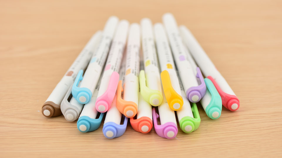 This highlighter marker set is a big hit every year with its light-colored ink that doesn't leak or smudge. The gentle colors are easy on the eyes, and the pen nibs come in thick and thin sizes on either end. These markers are great for coloring in grid squares to organize schedules or information and highlight notes. The ink is especially strong against leaking through the paper, making it a perfect match with the Hobonichi Techo.