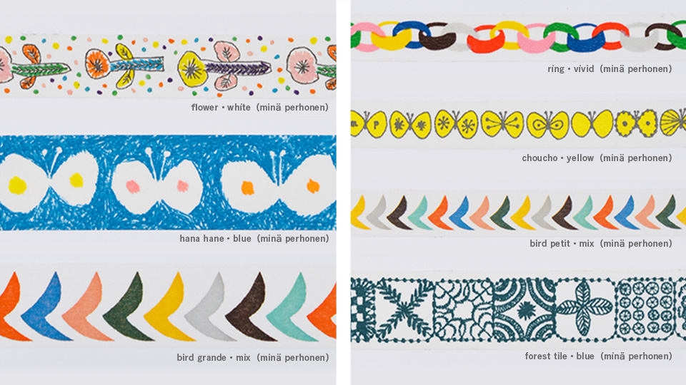 The “minä perhonen” series mt washi tape offers the characteristic warmth that can only come from hand-illustrated designs. The tape comes in a total of 7 designs, including the staple designs “choucho” and “hana hane.” The lineup also includes “bird,” which is the design offered in our “bird” cover this year, so we recommend checking that out for a great match.