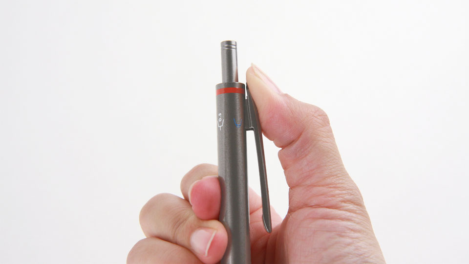 You can choose the pen tip by facing the icon of your choice upward and pressing the button, as gravity does all the work. The pen’s clip acts as the button to retract the pen tip.