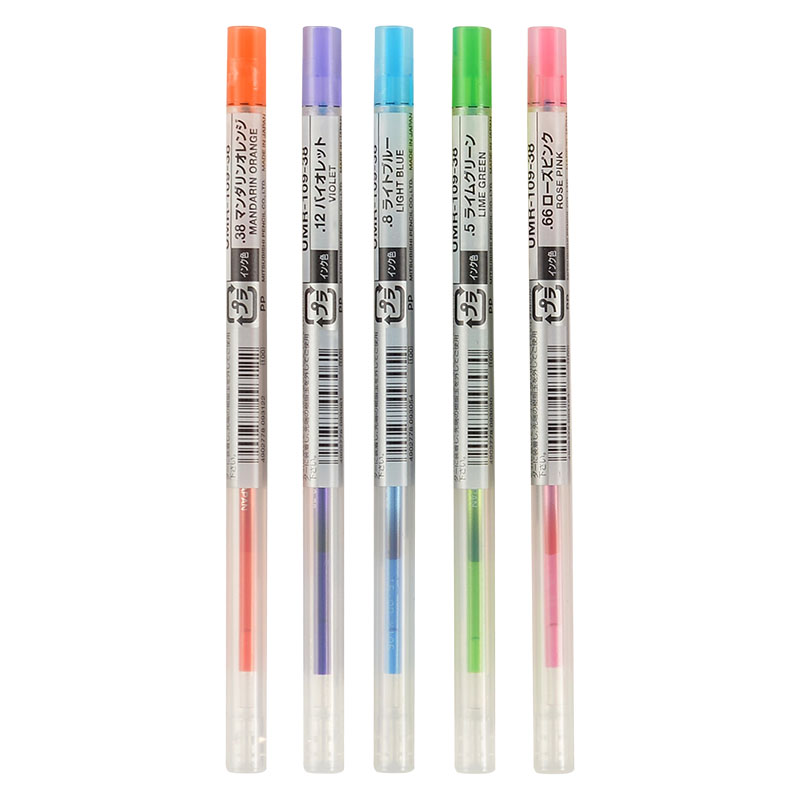 - Do not shake or drop, as ink may leak or stop dispensing properly.- Refill Set (0.38mm Gel Ink / 5-Color Set)