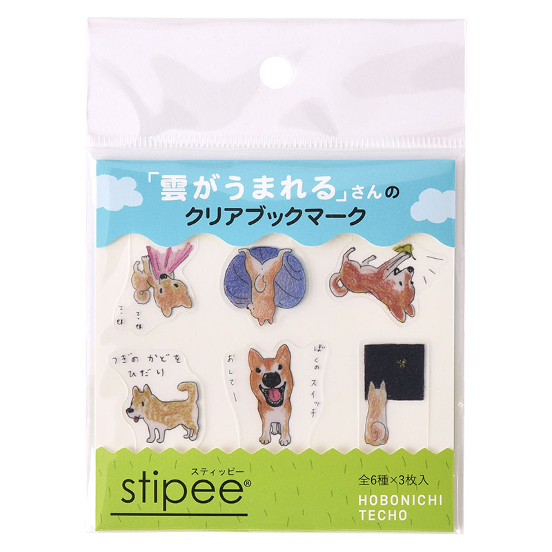 These clear bookmarks are illustrated with a cute Shiba-Inu dog by artist “A Cloud is Born.” The plastic sticky notes can be moved around and reapplied over and over again. Stick one at a time or line several up together so it protrudes from the edge of your book as a bookmark and serves as a great accent. There are six illustrations total, with three pieces each.