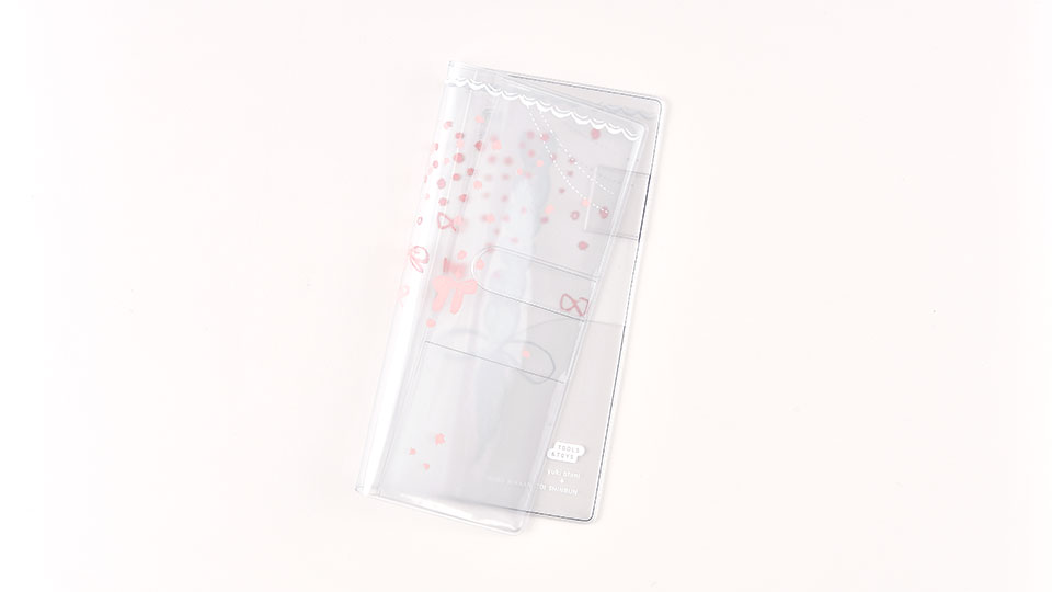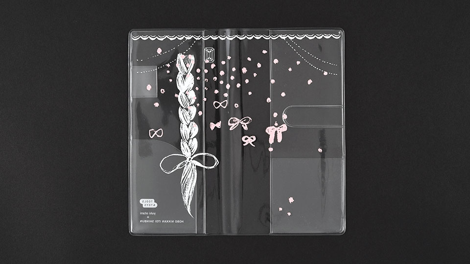 This is the decorated version of the Weeks Clear Cover, a protective, clear plastic covering that goes over your Hobonichi Techo Weeks. It protects your planner from wear and tear over the course of the year, and provides a sideways bookmark, a place to store your pen, and two card-size pockets.
