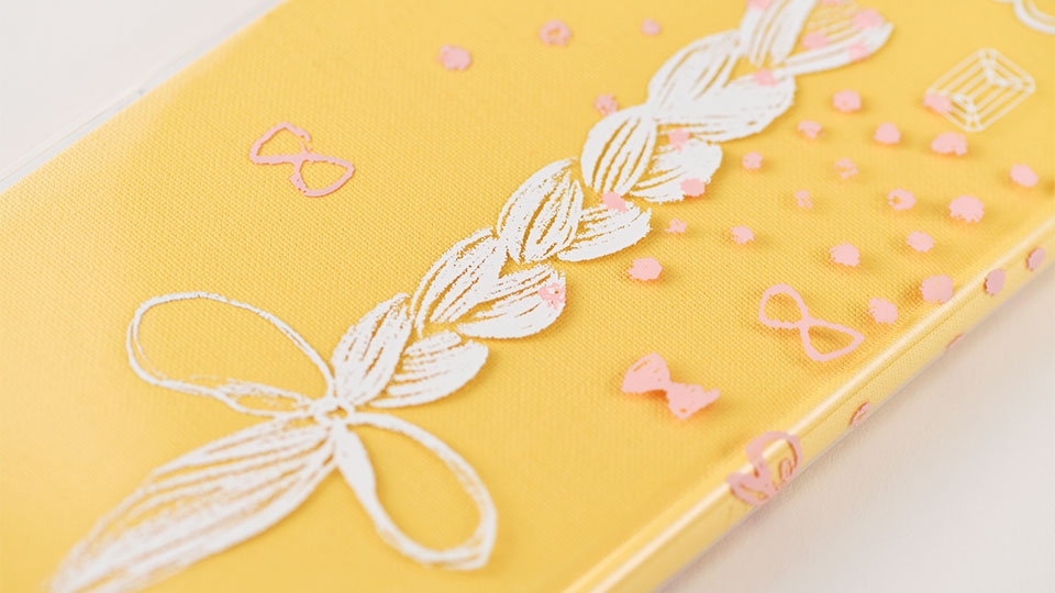 This Cover on Cover for wallet-size Weeks, designed by Yuki Otani, features a cute mix of braids and ribbons that looks differently depending on which pattern cover you pair it with.
