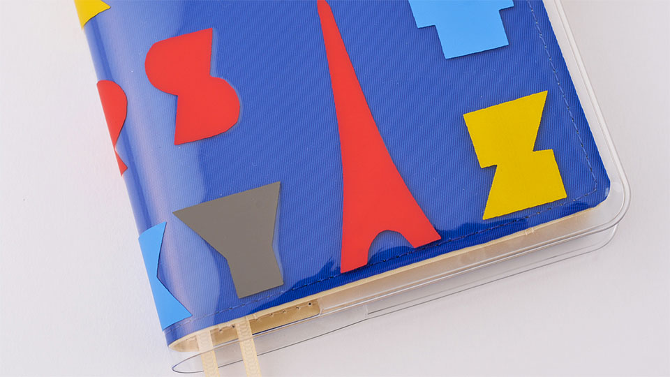 This is the decorated version of the Cover on Cover, an optional, extra covering that fits select Hobonichi Techo covers to protect them from wear and tear while instantly giving the cover a fresh new look. (Not for use directly on book.) It also provides a place to store postcards, pictures, and other decorations to spruce up the look of your cover. Feel free to store family pictures, travel postcards, and other decorations inside the Cover on Cover for additional customization.