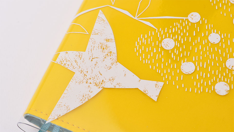 The leaves and birds have a geometric pattern tastefully accented with areas that appear as if the ink has faded. Depending on the color of the cover underneath, this versatile Cover on Cover can be either elegant or cute.